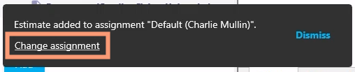 If you want to add an estimate that is associated with the Default (Charlie Mullin) assignment, you can first make it the active assignment by clicking Assignments, and then selecting that assignment from the drop-down menu.