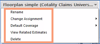 Notice the other options available to you in this drop-down, including Rename, Default Coverage, View Related Estimates, and Delete: