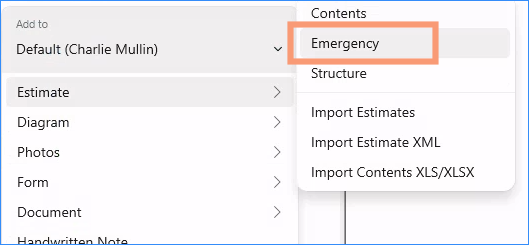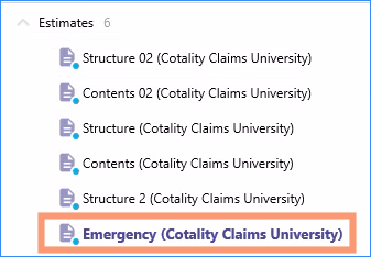 Note: In addition to the confirmation statement showing the associated assignment, the Emergency estimate is also bold, indicating that it is the active estimate. This indicates that any line items you add to a diagram will go into the Emergency estimate, since it is now set to active.