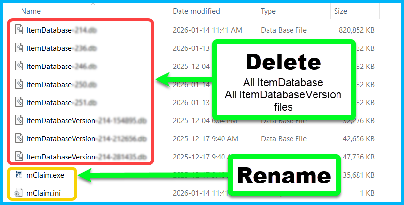 5. Rename the file “mClaim.db” to “mClaim_old.db” (or any other name)