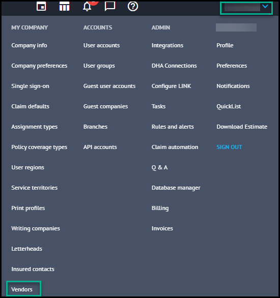 1. From Claims Workspace, click the Vendors tab to open the list of available vendors.