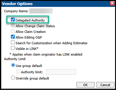 Delegated Authority is a status that an insurance company can give an assignee - giving them the same approval to make decisions on their behalf as if they were an internal assignee. A vendor with delegated authority has the same permissions in handling a claim as the originating company.