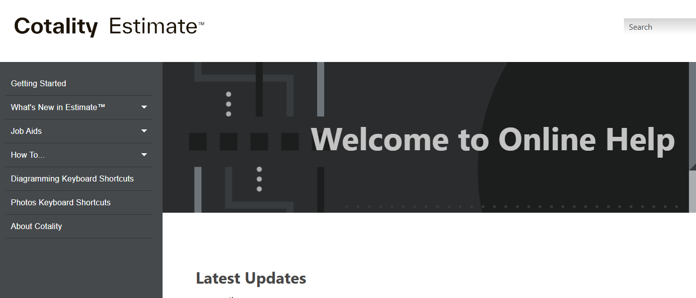 Cotality's Claims Estimate™ in-application help is accessible by clicking the "?" symbol at the top right of Estimate. Clicking the "?" links directly to the help page. You can access that content HERE.