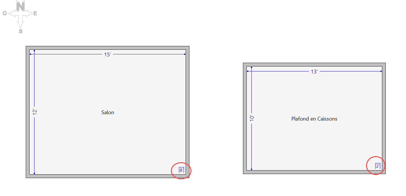 - Définir les dimensions de la pièce et la hauteur du plafond. Assurez-vous que la hauteur du plafond correspond à la hauteur du caisson. Dans l'exemple ci-dessous, elle est de 8 pi.