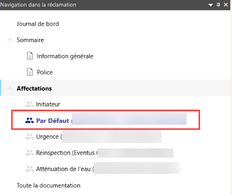 Compléter l'Affectation : ouvrez la réclamation et dans le panneau Navigation dans la réclamation, cliquez sur l'Affectation qui appartient à votre entreprise. Dans la fenêtre d'affectation qui s'affiche, cliquez sur Affectation complétée.