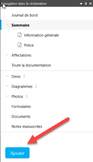 - Cliquer sur le bouton Bleu Ajouter dans le Panneau de Navigation dans la réclamation.