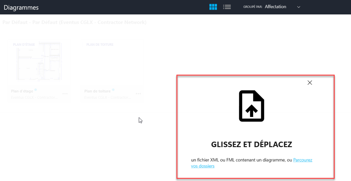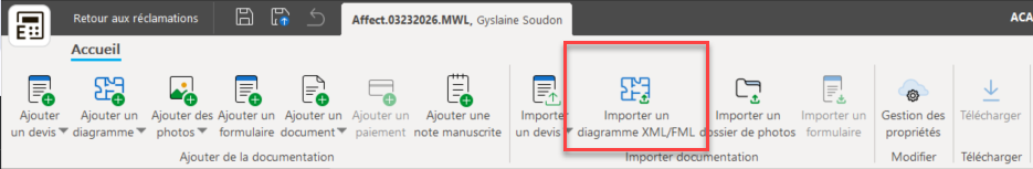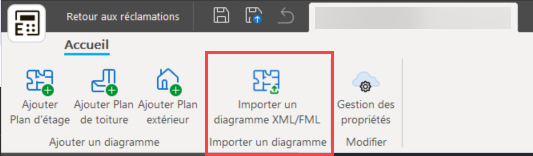 - Dans le ruban, trouver l'option Importer un diagramme XML/FML et cliquez dessus.