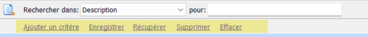 - Récupérer pour faire apparaître une ou plusieurs recherches précédemment enregistrées.