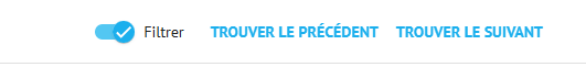 Après avoir vos critères de sélectionnés, vous pouvez soit passer au prochain en cliquant sur TROUVER LE SUIVANT ou revenir en arrière en cliquant sur TROUVER LE PRÉCÉDENT. Pour voir toute la liste, activer Filtrer.