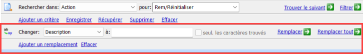 Une fois vos critères de recherche définis, vous pouvez activer l'outil Remplacer en cliquant sur l'option dans la barre d'outils.