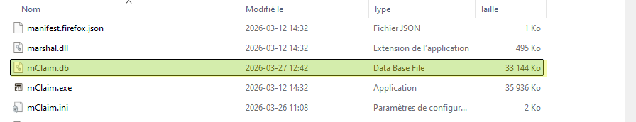 Le fichier que nous devons modifier s'appelle mClaim.db. Il y a 2 emplacements par défaut où ce fichier peut être trouvé.