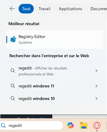 a) Dans la bar de recherche ecrivez "Regedit" et clickez sur ENTER
