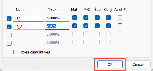 Étape 3 : Sélectionnez « Enregistrer »ou "Annuler" si vous désirez appliquer ou non les changements apportés aux taxes.