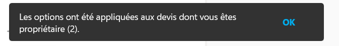 Étape 3 : Cliquez sur le bouton radio Appliquer ces totaux à tous les devis. Cliquer ensuite sur Appliquer.