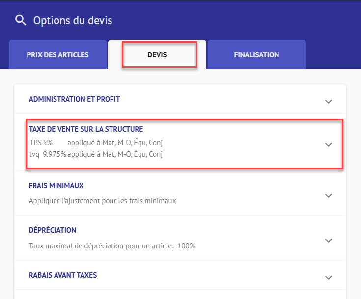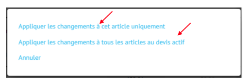 Toutes ces configuarations sont modifiables par un usager au niveau des articles d'un devis.