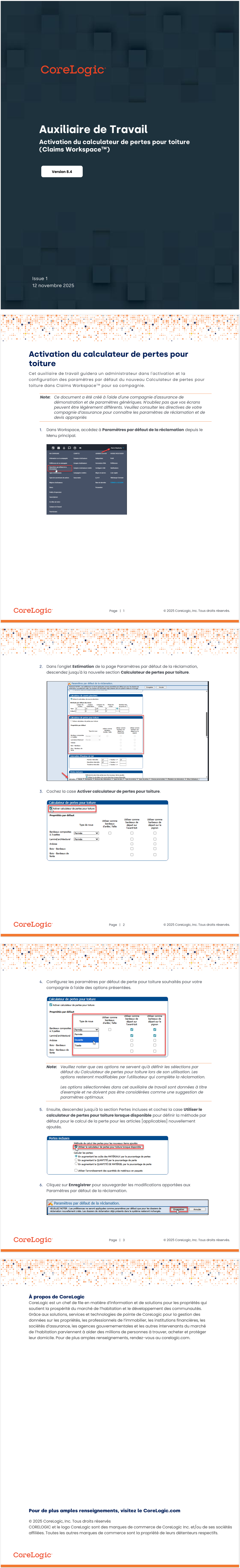Activation du calculateur de pertes pour toiture dans Workspace™ (8.4)