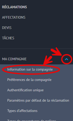 Vous pouvez facilement trouver votre identifiant de compagnie dans les informations sur l'entreprise, dans le menu MA SOCIÉTÉ.
