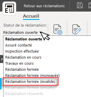 - Une fois qu'une réclamation est marquée comme non valide, vous perdrez l'accès aux diagrammes, devis, photos et formulaires de la réclamation.