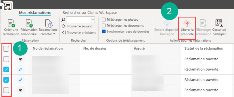 - Cocher dans les boitier se retrouvant à gauche des réclamations dont vous avez la propriétés
