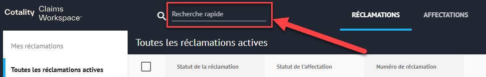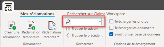 Vous pouvez rechercher une réclamation, ouverte ou fermée, dans Claims Workspace et Estimate.